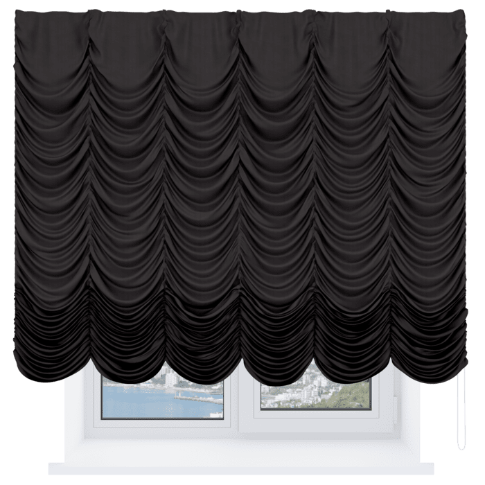 Французская штора лён черный, карниз верёвочный