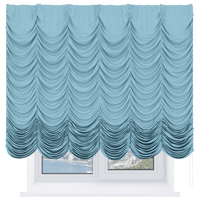 Французская штора лён кашемир голубой, карниз верёвочный